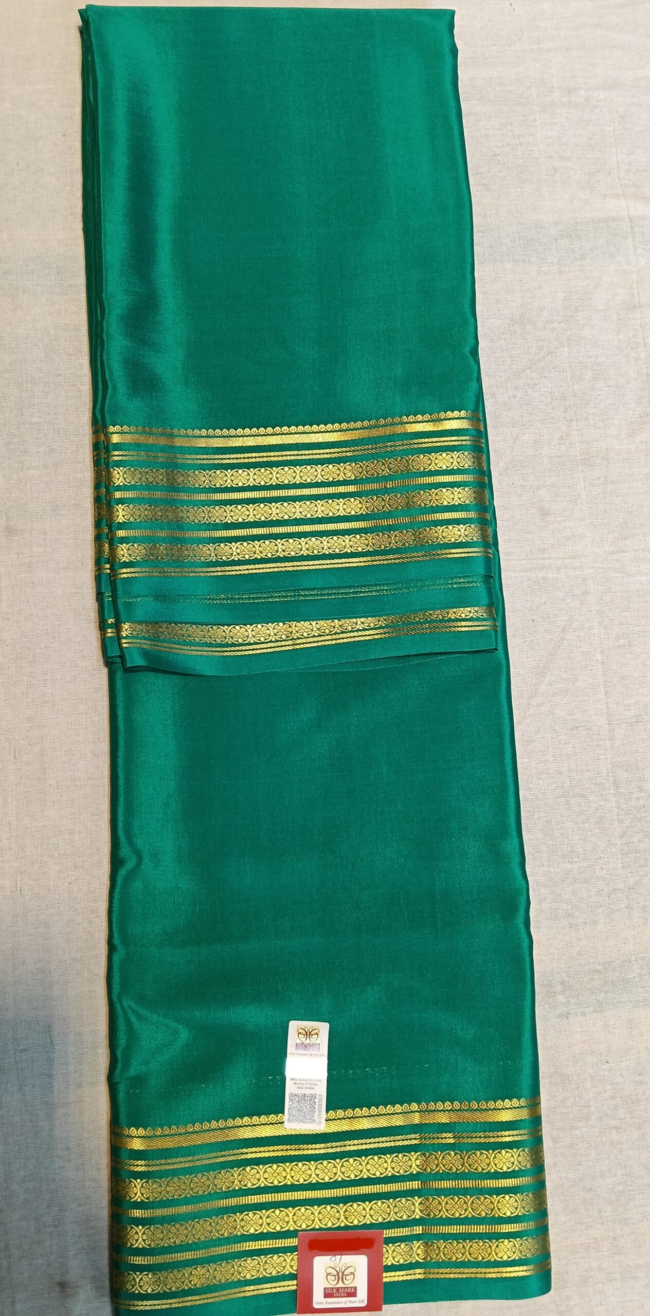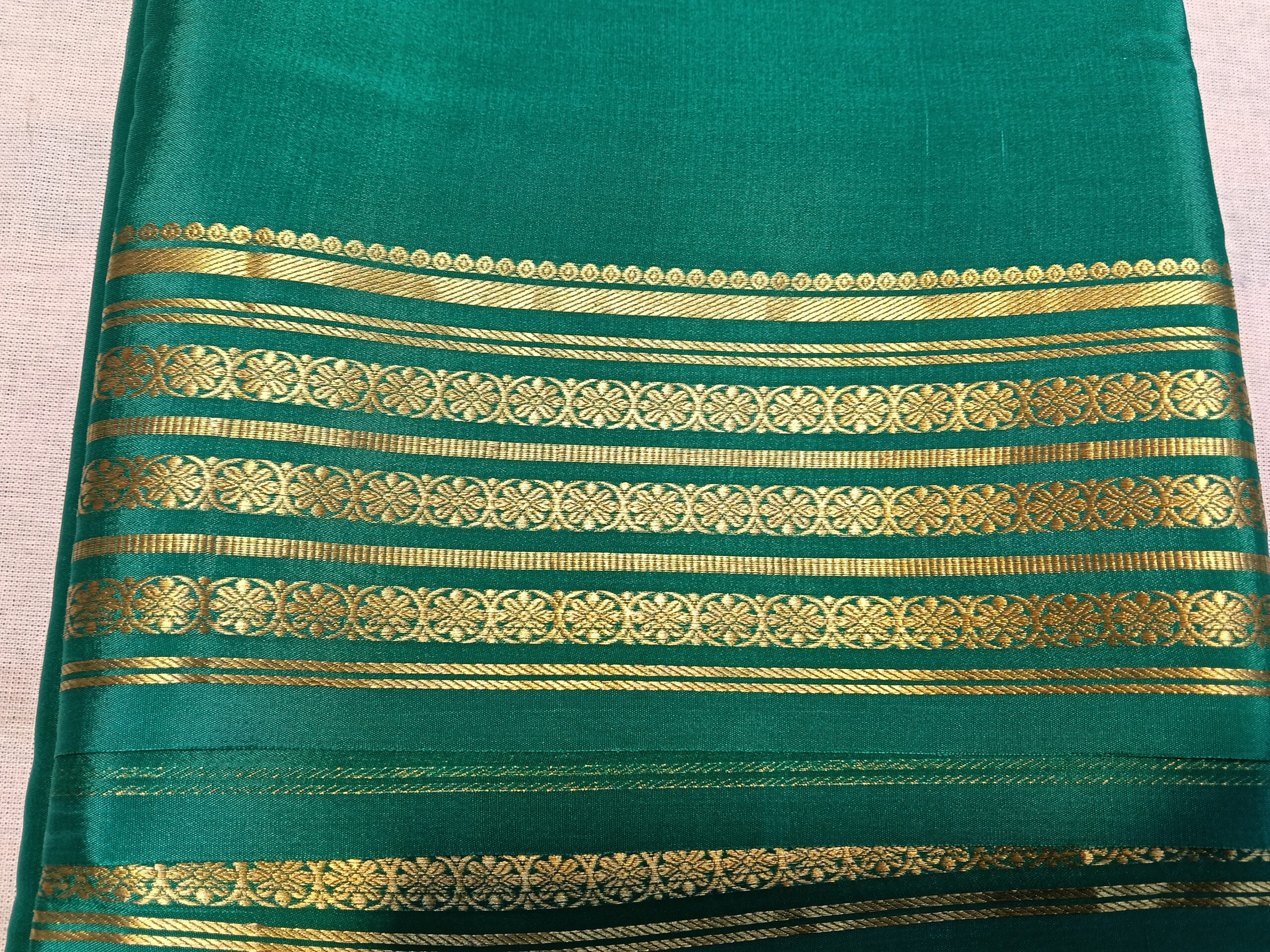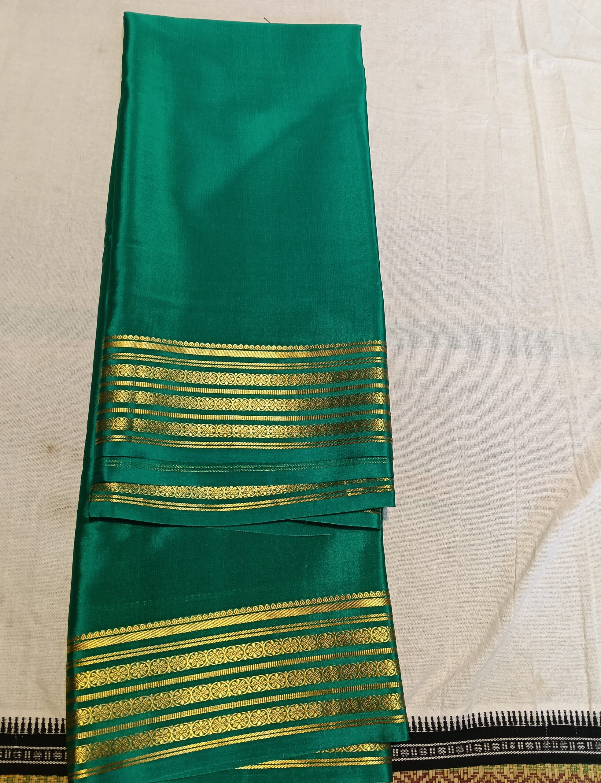 Green Mysore Crepe Silk Saree with Gold Border