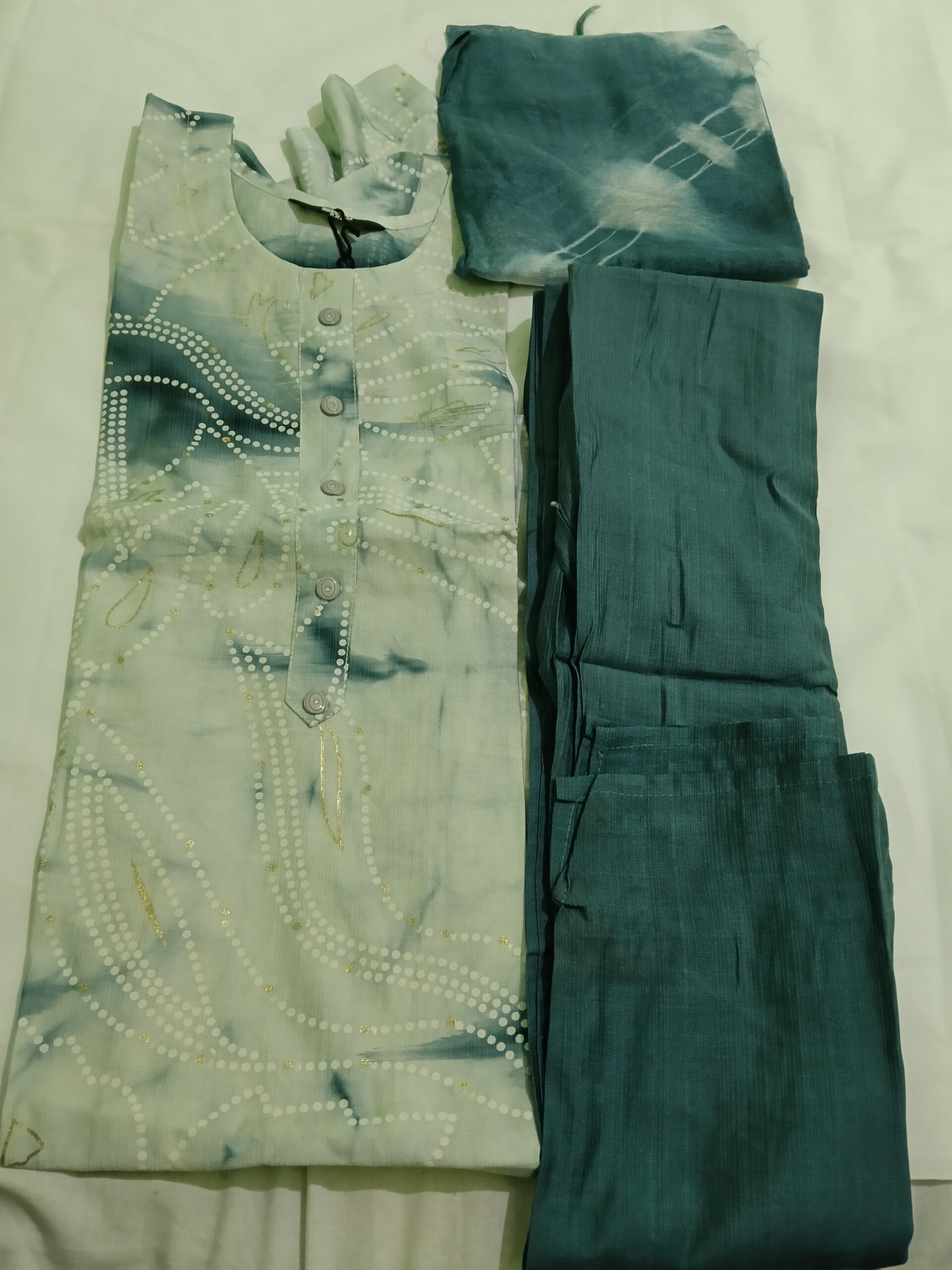 Graceful green salwar kameez set with matching salwar and dupatta. Lightweight and comfortable, it offers a refined traditional look suitable for casual outings, festive gatherings, and cultural occasions, blending ethnic charm with modern everyday wear.