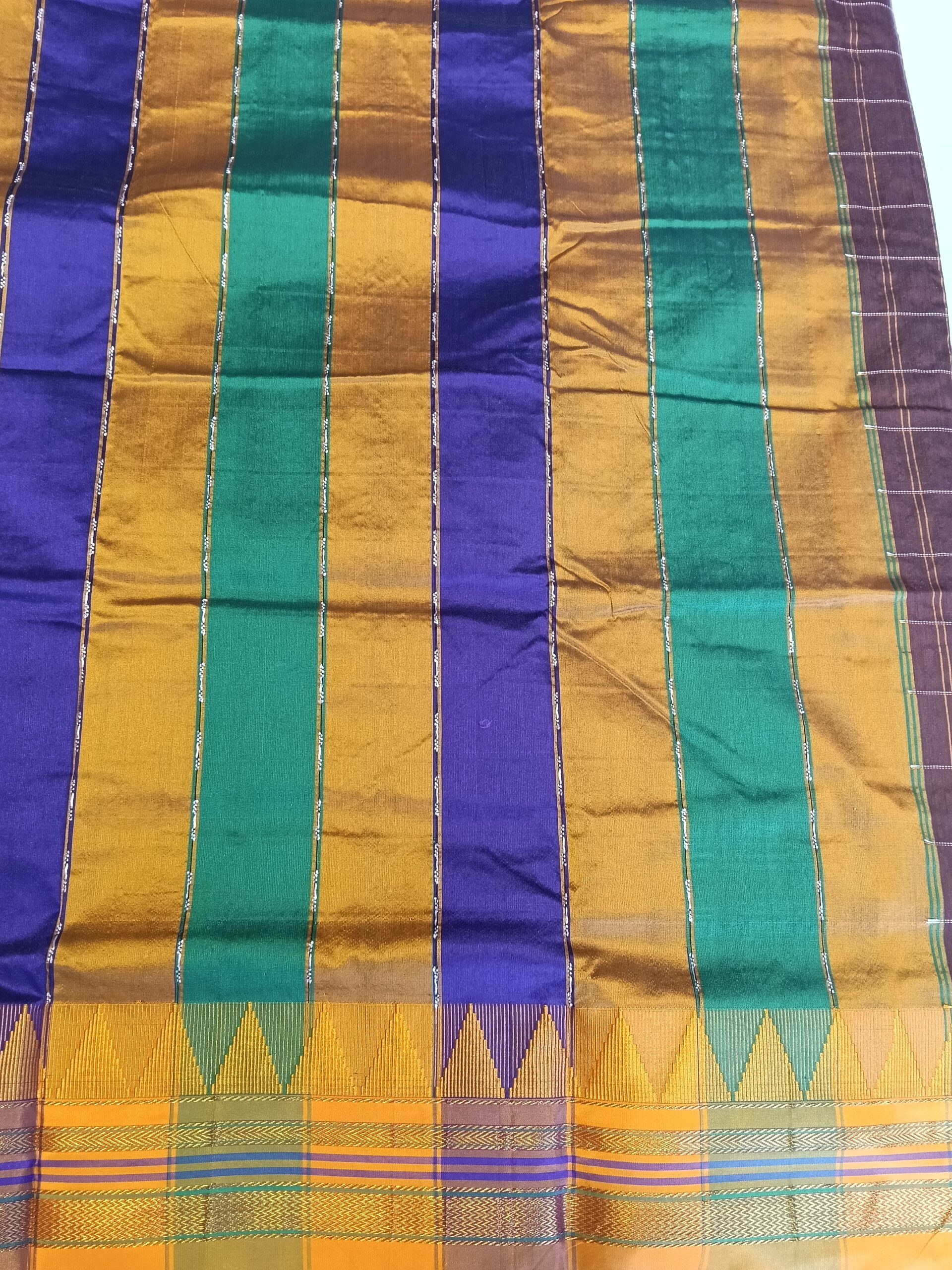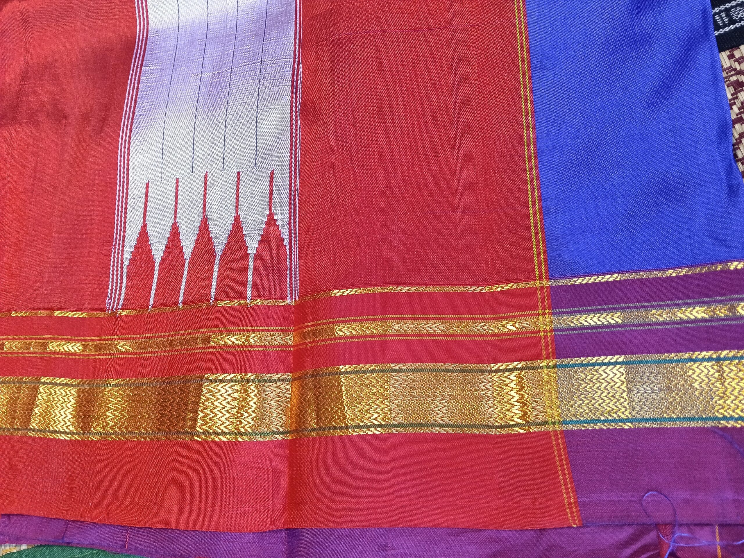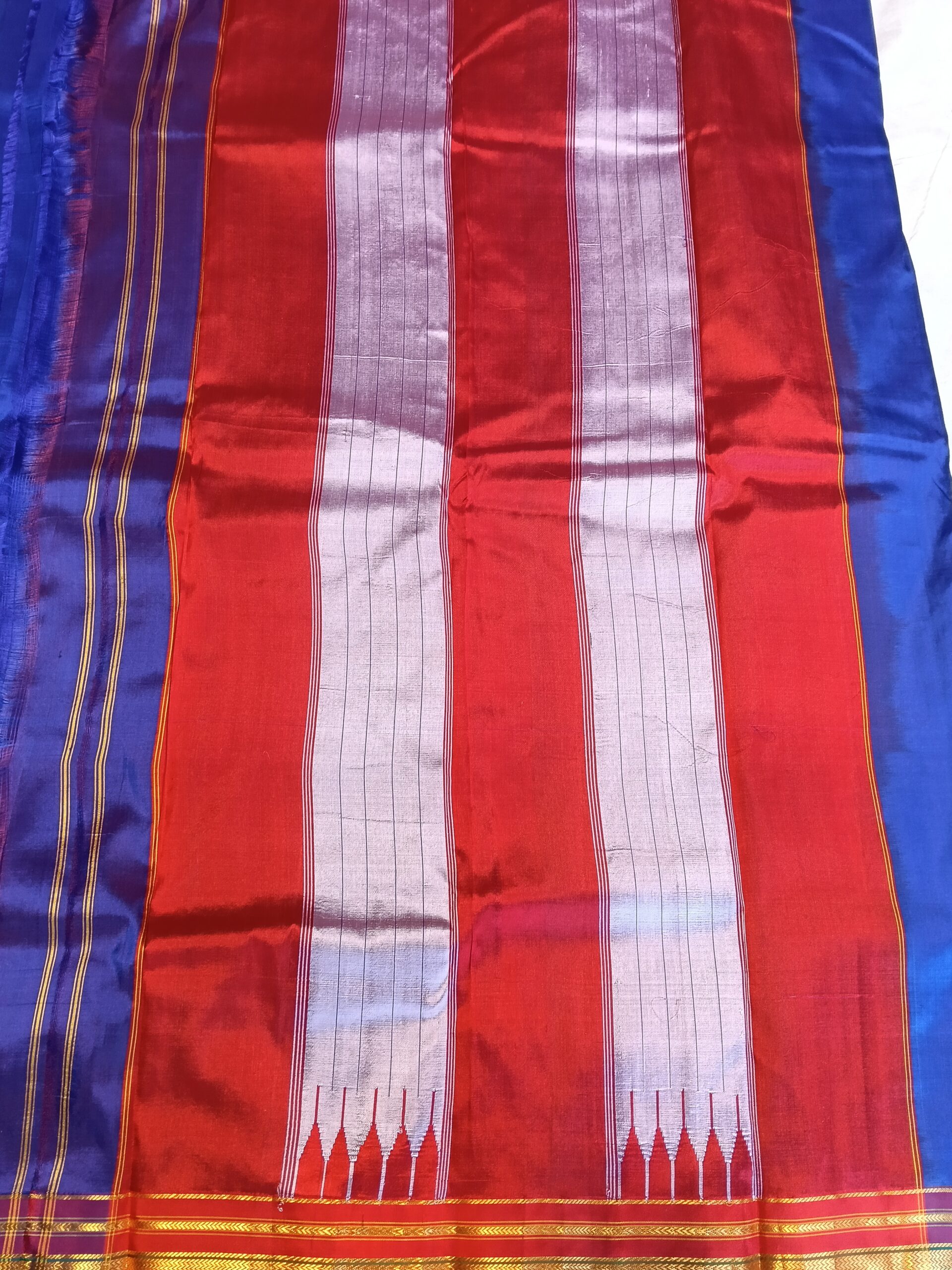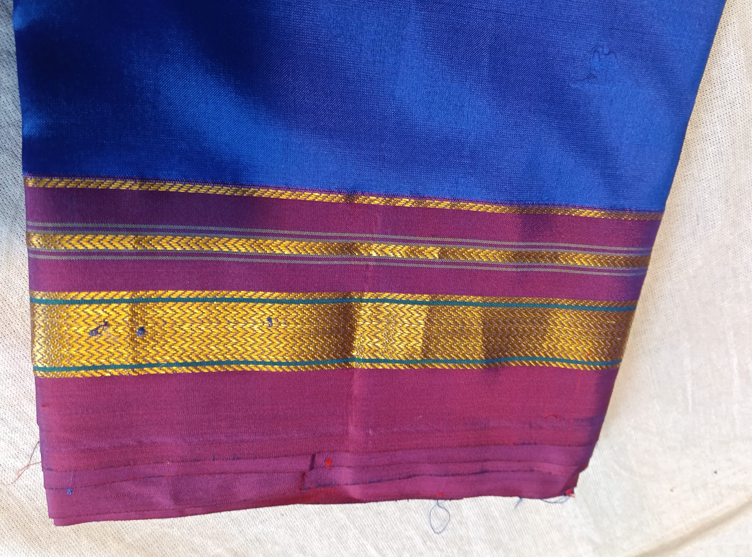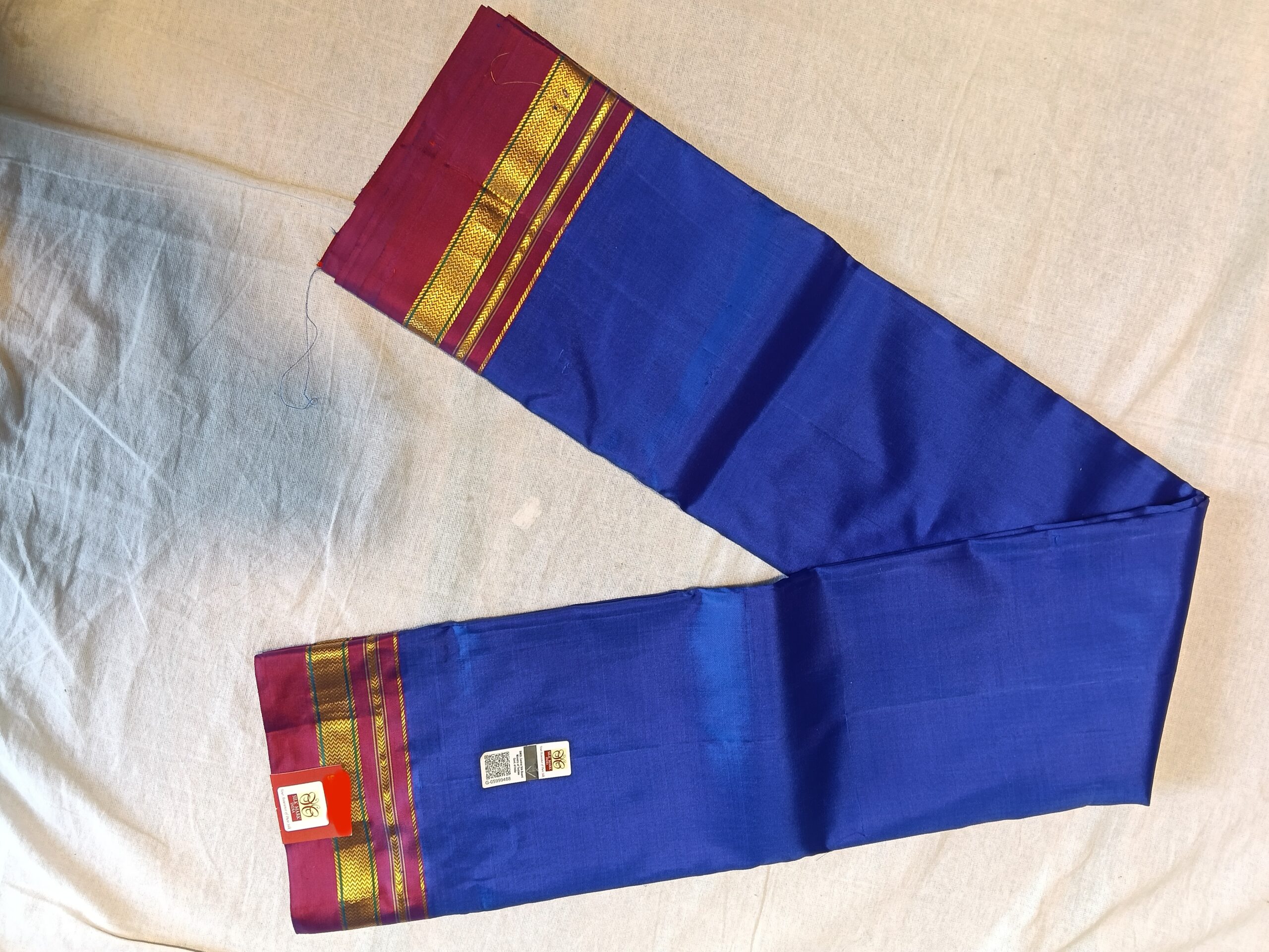 Malbari Blue Ilkal Saree with Maroon Gold Border